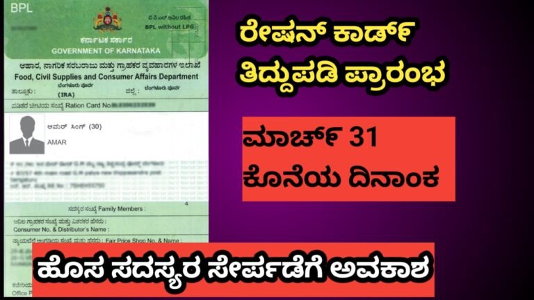 ರೇಷನ್ ಕಾರ್ಡ್ ತಿದ್ದುಪಡಿ ಆರಂಭ 2026: ಮೊಬೈಲ್‌ನಲ್ಲೇ ಅರ್ಜಿ ಹಾಕಿ – ಹೊಸ ಸದಸ್ಯರ ಸೇರ್ಪಡೆಗೆ ಮಾರ್ಚ್ 31 ಕೊನೆಯ ದಿನ