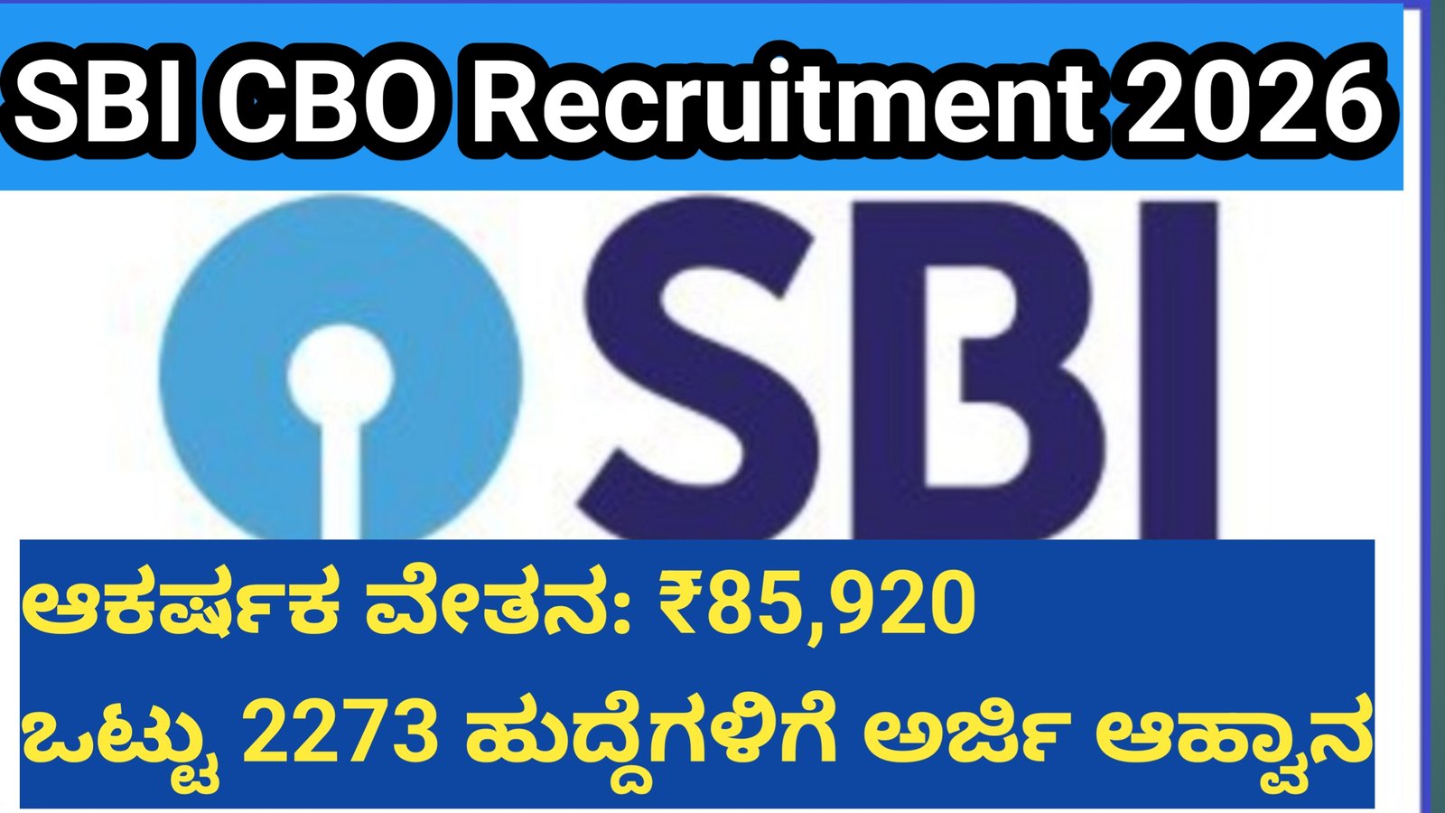 ಭಾರತದಲ್ಲಿ ಬ್ಯಾಂಕಿಂಗ್ ಕ್ಷೇತ್ರದಲ್ಲಿ ಸರ್ಕಾರಿ ಉದ್ಯೋಗ ಪಡೆಯುವುದು ಲಕ್ಷಾಂತರ ಯುವಕರ ಕನಸಾಗಿದೆ. ಅದರಲ್ಲೂ ಸ್ಟೇಟ್ ಬ್ಯಾಂಕ್ ಆಫ್ ಇಂಡಿಯಾ (SBI), ದೇಶದ ಅತಿ ದೊಡ್ಡ ಸಾರ್ವಜನಿಕ ವಲಯದ ಬ್ಯಾಂಕಿನಲ್ಲಿ ಅಧಿಕಾರಿಯಾಗಿ ಸೇವೆ ಸಲ್ಲಿಸುವ ಅವಕಾಶ, ಉದ್ಯೋಗಾರ್ಹರಿಗೇ ಅಲ್ಲದೆ ಅವರ ಕುಟುಂಬಕ್ಕೂ ಗೌರವದ ವಿಷಯವಾಗಿದೆ. ಈ ವರ್ಷ, SBI Circle Based Officer (CBO) Recruitment 2026 ಮೂಲಕ ಒಟ್ಟು 2273 ಹುದ್ದೆಗಳ ಭರ್ತಿಗೆ ಅಧಿಕೃತ ಅಧಿಸೂಚನೆ ಪ್ರಕಟಿಸಲಾಗಿದೆ.